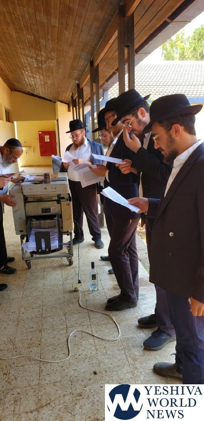Working together and within a very short time, the entire operation was set up. This past Sunday, surrounded by enthusiastic local residents and the vast hills of the Golan Heights, 100 crisp copies of the tanya rolled off the press in Ramat Trump.