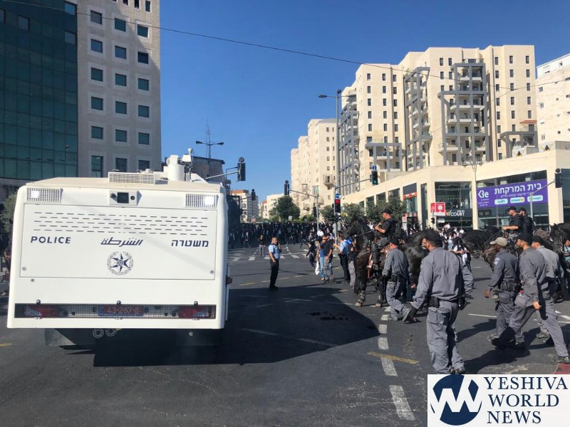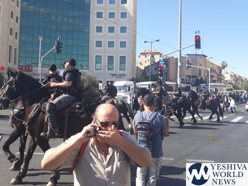 Participants were instructed to arrive in the area of Yaffo and Sarei Yisrael Streets, which was quickly shut. The jerusalem Light Rail was brought to a stop, as well as buses and thousands of cars travelling in the area were forced into gridlock.