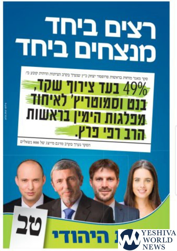 According to the campaign, a poll conducted by Magar Mochot shows 49% favor bringing back Shaked and Bennet to the party, which would remain under the leadership of Peretz. The campaign also mention’s Smotrich’s Ichud Leumi party.