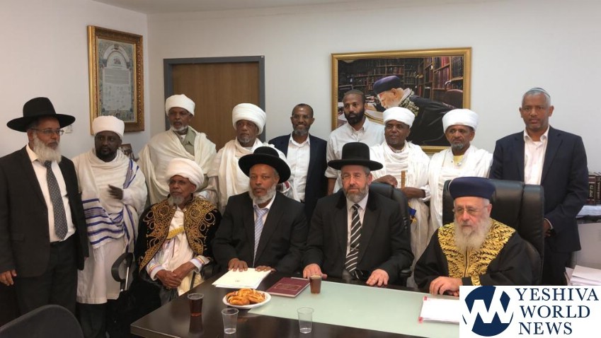 The Chief Rabbis of Israel, HaRav Dovid Lau and Rishon L’Tzion HaGaon HaRav Yitzchak Yosef Shlita met with the Chief Rabbi of the Ethiopian community in Israel, Rabbi Reuven Wabeshet (וובשת) together with community leaders and agreement was reached to calm the situation after the violent demonstrations as well as ending the violent protests.