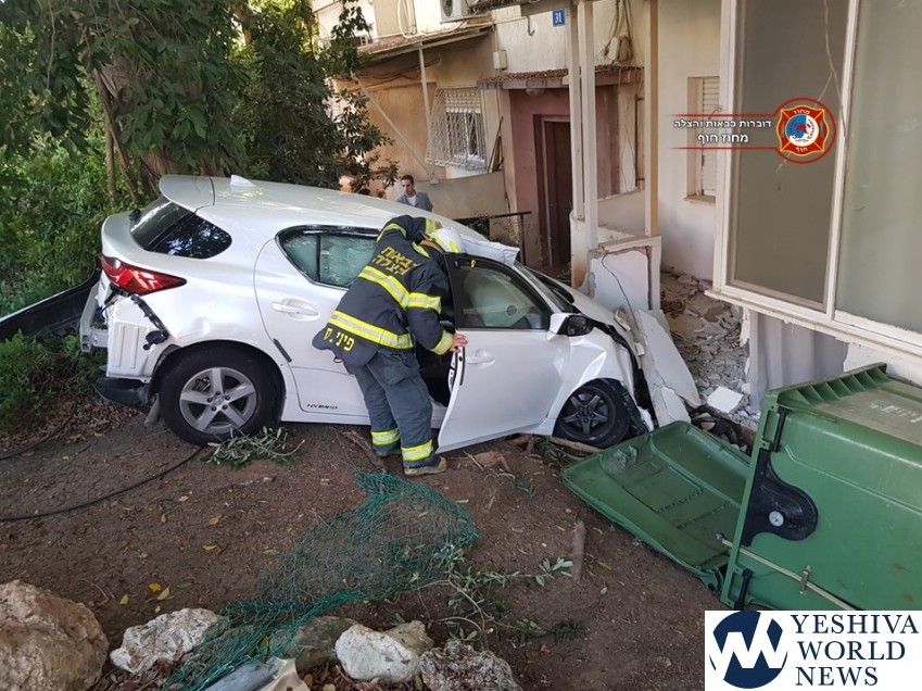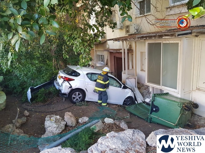 A private vehicle during Tuesday morning rush hour veered out of control and slammed into the yard of a private home on Moriah Blvd. in the Central Carmel area of Haifa.