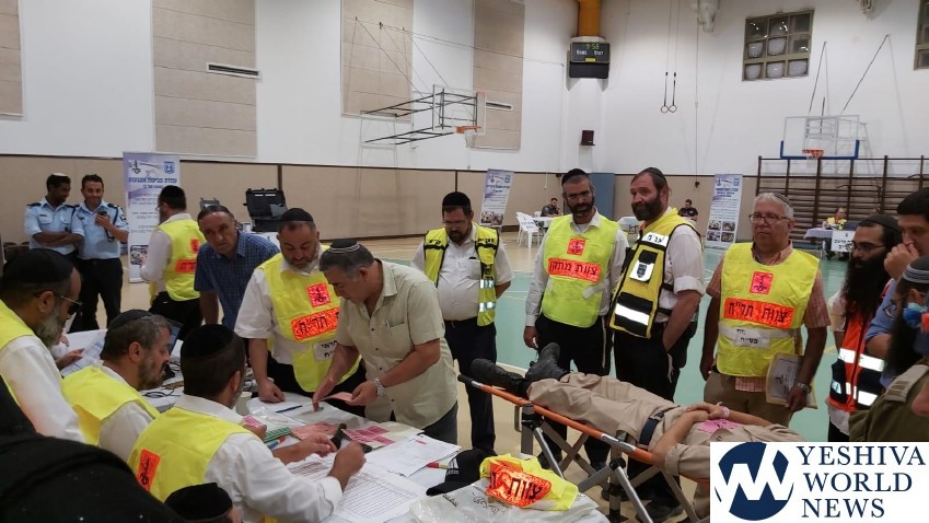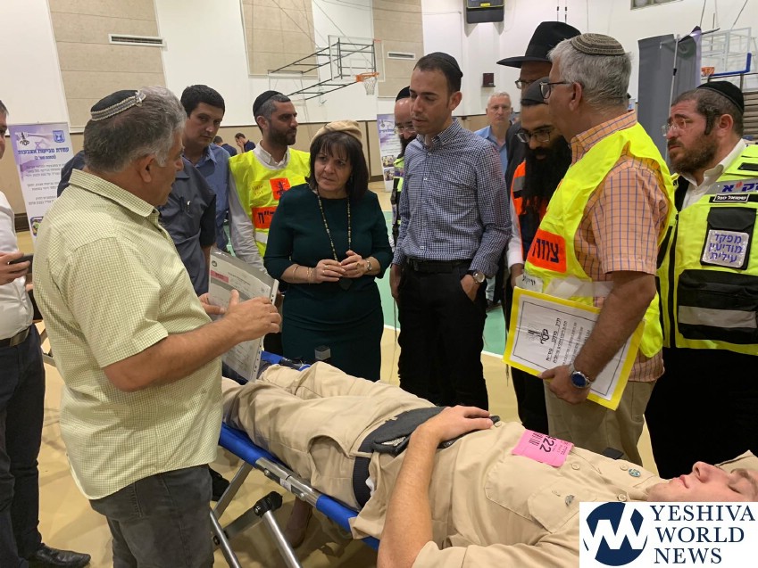 The exercise was conducted in the presence of Beit Shemesh Mayor Dr. Aliza Bloch, as well as senior Interior Ministry Jerusalem District officials, IDF Homefront commanders, neighboring mayors and council heads, area social and welfare officials and others.