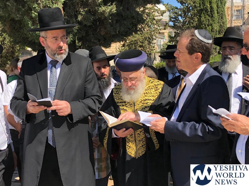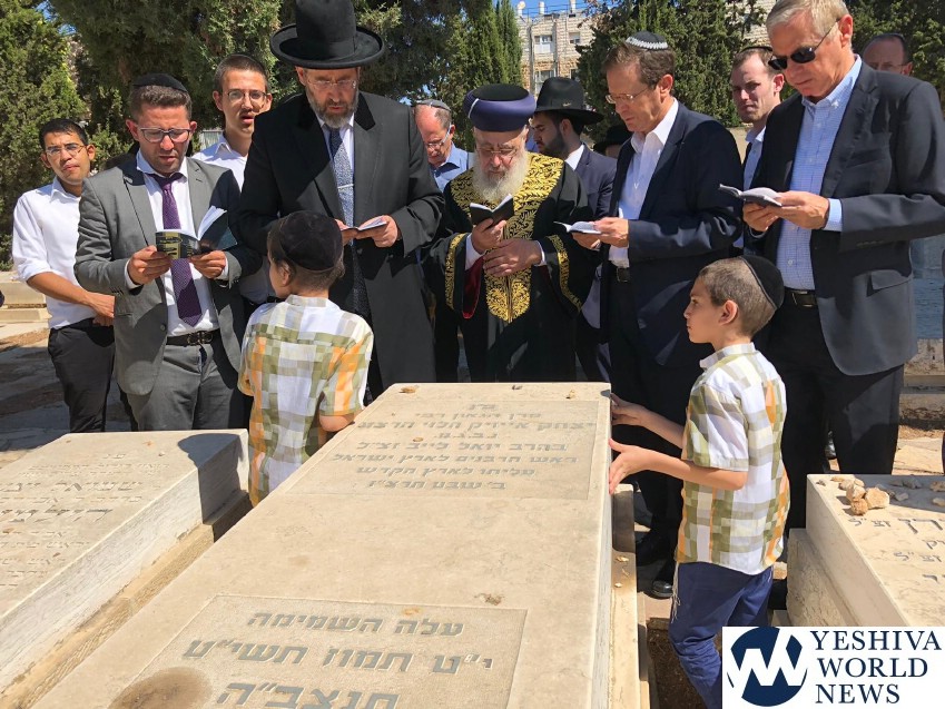 Among those visiting the kever in the Sanhedria Cemetery in Jerusalem were Chief Rabbi Dovid Lau Shlita and Rishon L’Tzion HaGaon HaRav Yitzchak Yosef Shlita.