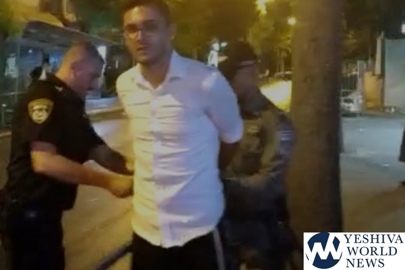 Three days after he was captured on video assaulting chareidi protesters at Jerusalem’s Kikar Shabbos, he was detected once again during another protest at the same location on motzei Shabbos, during yet another protest over the arrest of talmid yeshiva Eliezer Rubin for being a draft dodger. This time around, the 18-year-old attacker dressed in chareidi clothing was taken into custody by police.