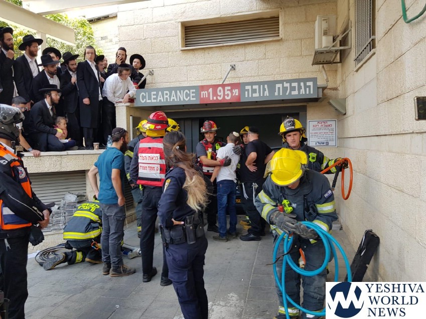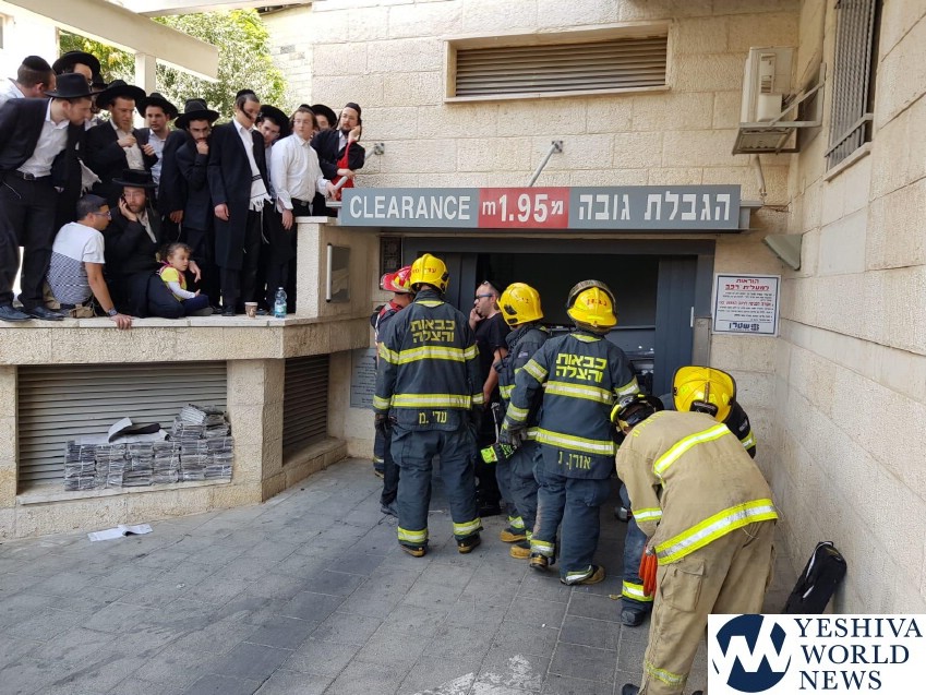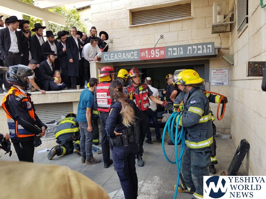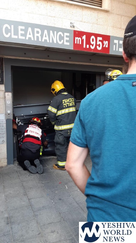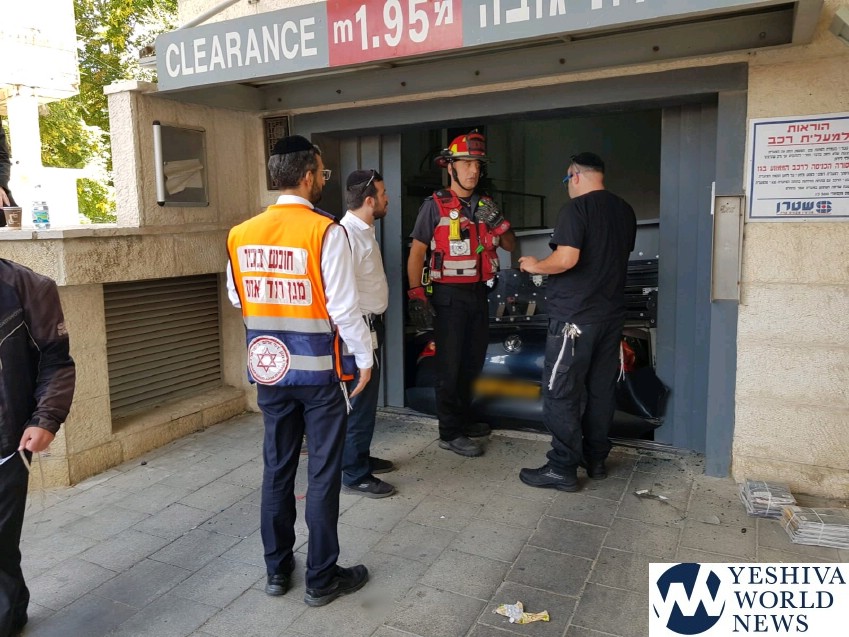 Four fire and rescue units responded on Sunday afternoon to a call for a vehicle crushed in an elevator of a parking lot in Yeshayahu Street in the Meah Shearim neighborhood of Jerusalem.