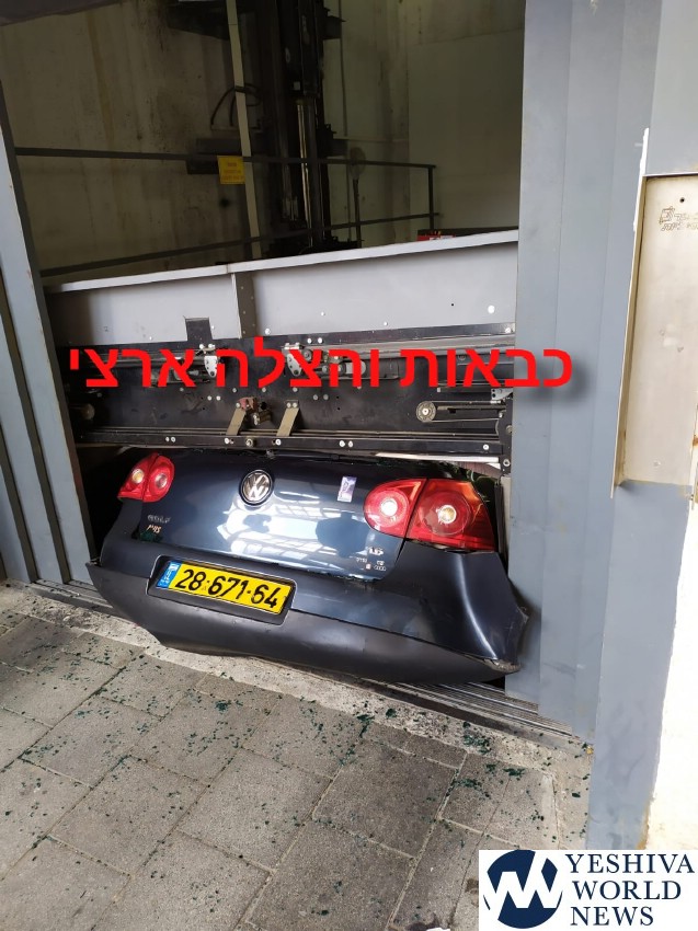 Four fire & rescue units of the Jerusalem fire district responded to Yeshayahu Street in the Meah Shearim area of the capital on Sunday to a report of a vehicle crushed inside an elevator of a parking lot.