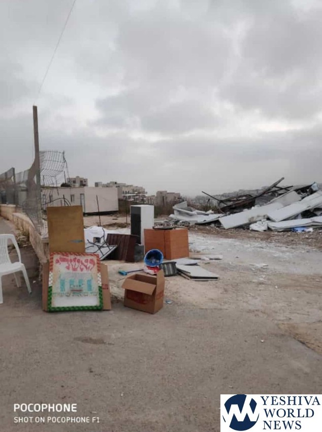 It was a difficult scene during the night as a tractor destroyed Beit Knesset Heichal Baal Shemtov in Ramat Beit Shemesh Gimmel as City Hall reports the shul, like another before it, was set up illegally.