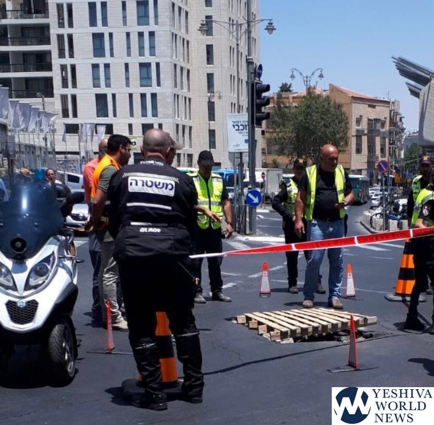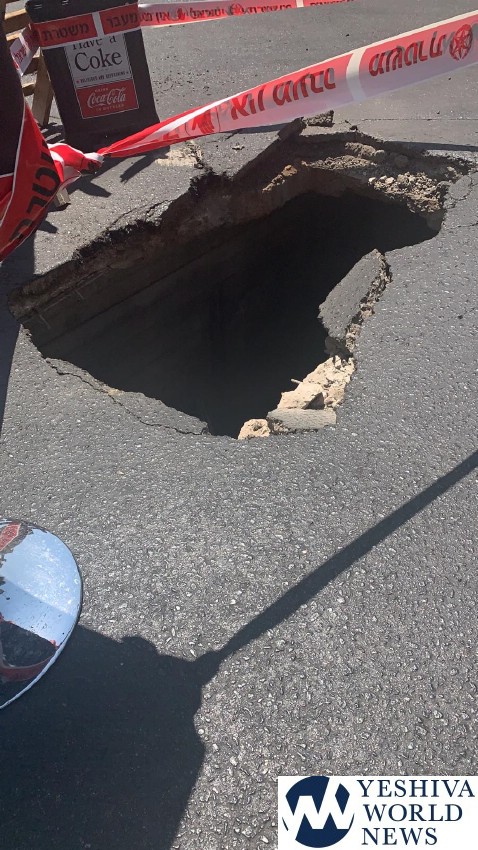 A sizable sinkhole at the intersection of Jerusalem’s Aggripas and Kiach Streets, at the corner of Machane Yehuda, caused significant traffic delays as the shuk was bustling on Thursday afternoon.