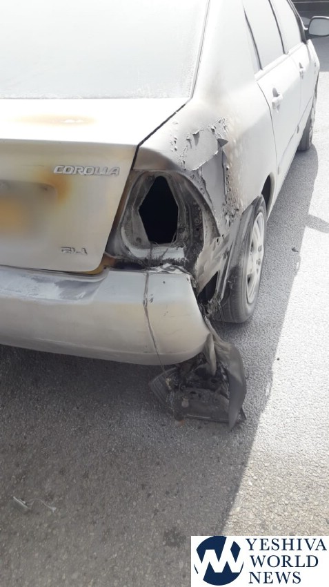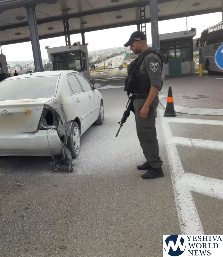 The vehicle approached the checkpoint on Tuesday, and security personnel saw smoke coming out of the rear of the vehicle. A border policeman, commander of the crossing, saw the smoke emanating from the vehicle and acted quickly, grabbing a fire extinguisher and putting out the fire without incident. The commander also assisted the panicked woman who was inside the vehicle.