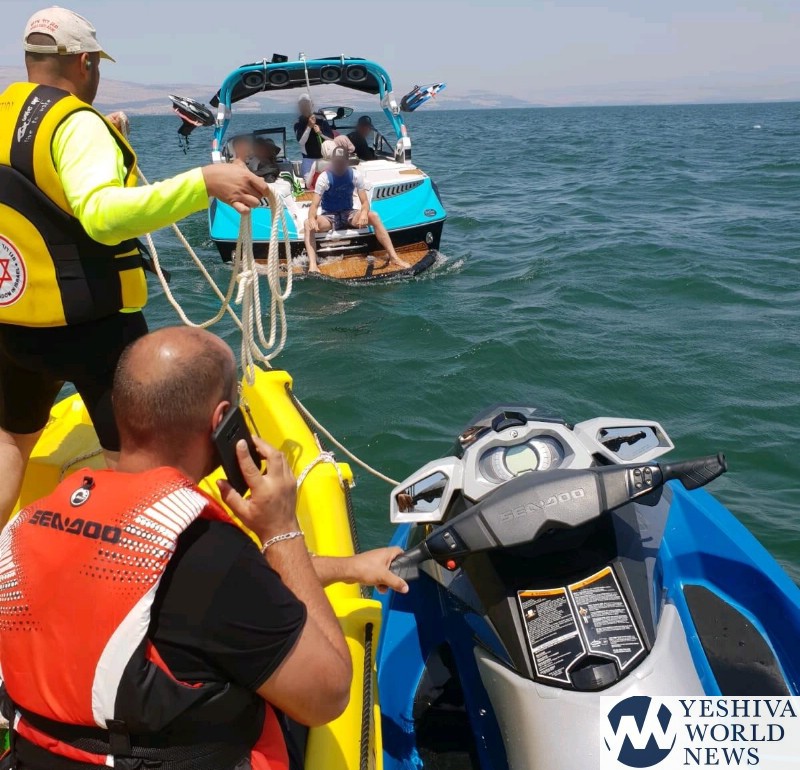 MDA EMTs responded to two women in distress in the Kinneret on Tuesday. The women went out to sea on a jet ski.
