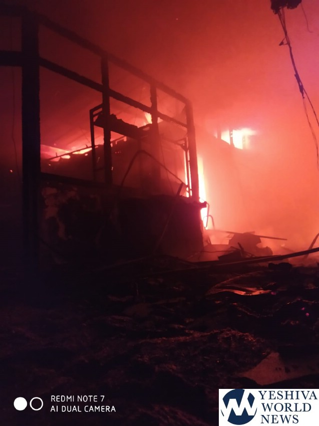 Firefighters responded to a blaze during the night in the S’dot Negev Regional Council in Southern Israel. A private building used as a storage facility was on fire, a building used to house second-hand clothing. The entire structure was destroyed as seen in the photos.