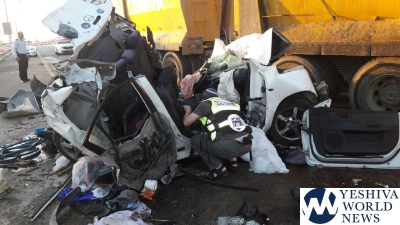 A 50-year-old man was pronounced dead on the scene as firefighters worked to extricate him from the twisted remains of his vehicle. A chareidi man, 45, was treated by MDA and transported by MDA to the trauma unit of Soroka Medical Center in Be’er Sheva with massive traumatic injuries. In addition, two males in their 20s were in moderate condition and five others in light condition. All the victims were transported to Soroka.