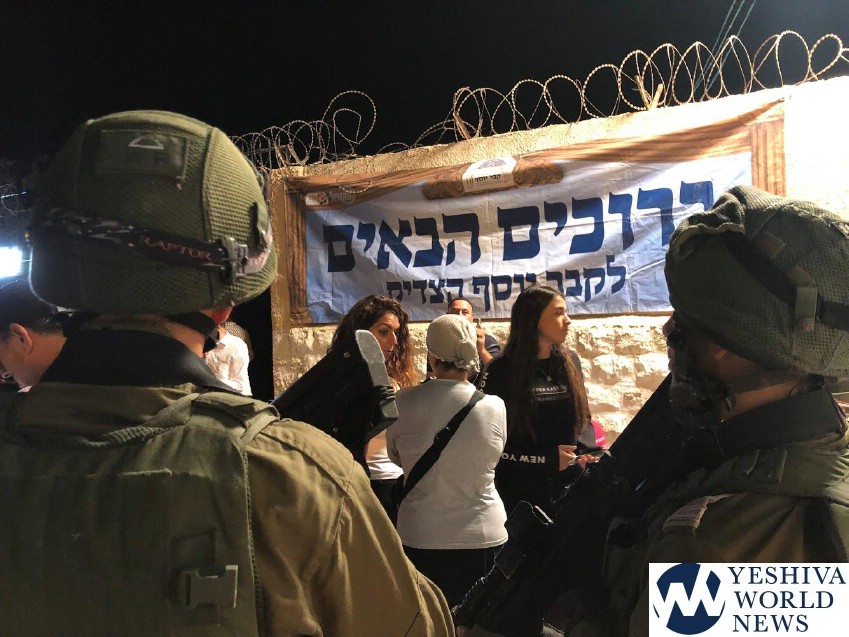 IDF soldiers, border police and agents of the Civil Administration were part of the security detail protecting some 1,200 mispallalim arriving during the night (Monday to Tuesday) to be mispallel at Kever Yosef, located in PA (Palestinian Authority) occupied Shechem.