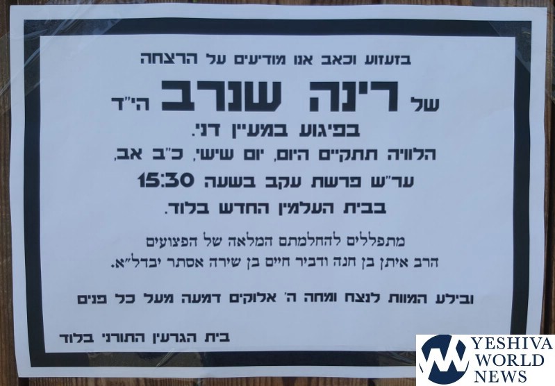 The victim has been identified as Rina Shnerb HY”D of of Lod.