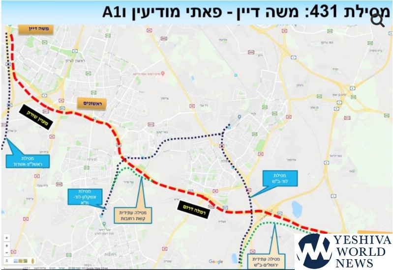The number 431 train line connects the southern coastal area to Modi’in and Jerusalem via a series of bridges and tunnels. The cost of the project which is expected to transport 15,000 passengers daily is NIS 3.2 billion.