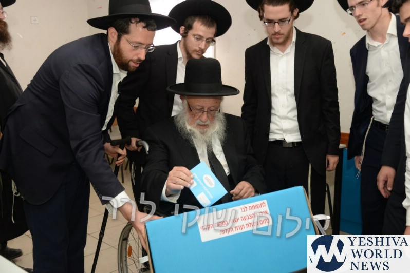 With all respect, why isore than one person allowed to be with Rabbi Kanievsky when he picks up his ballot? While I don’t doubt that voter fraud was not committed in his case, seeing this at the polling station makes me wonder what else could happen there