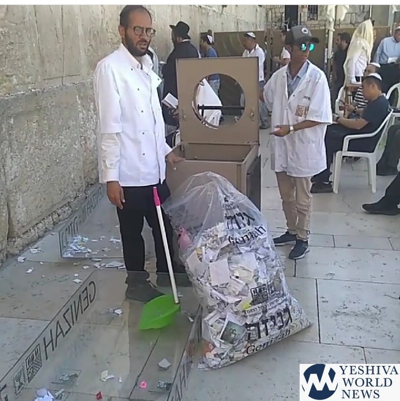 In line with the bi-annual custom, the kvitlach at the Kosel are being removed from between the stones ahead of Rosh Hashanah. They are also removed annually ahead of Pesach.