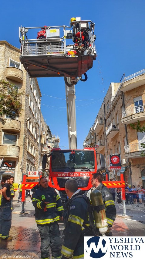 The fire broke out in 11 Ben Yehuda Street. Eight fire apparatus responded and the process of clearing the tenants from the burning building began immediately upon the fire department’s arrival. Police worked with firemen to get the tenants out of the building.