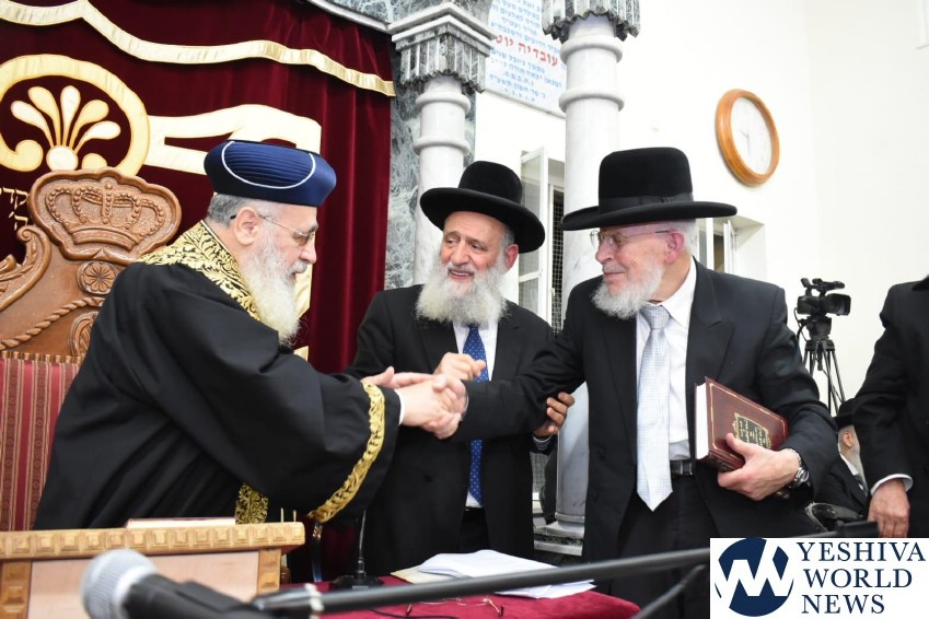 The annual yahrzeit seuda for Maran HaGaon HaRav Ovadia Yosef ZT”L was held on motzei Shabbos Parshas Bereishis in Yerushalayim’s Yazdim Shul in the framework of Rishon L’Tzion HaGaon HaRav Yitzchak Yosef’s Shlita weekly shiur.