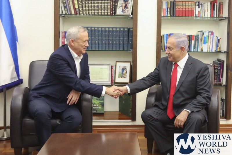 Blue and White Chairman MK Benny Gantz met today with Prime Minister Binyamin Netanyahu in Tel Aviv in order to discuss the current political possibilities in the hopes of avoiding a third election. The negotiating teams for both parties will remain in contact and a second meeting is expected in the near future.