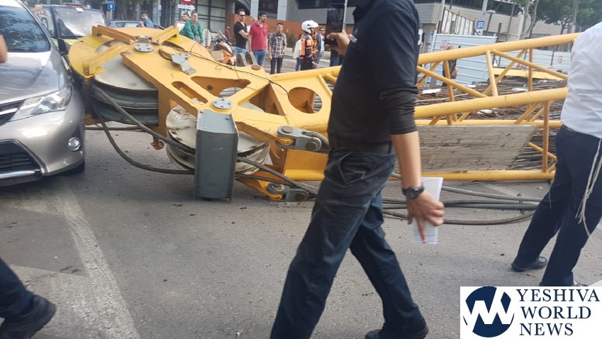 One vehicle, driven by a Chareidi man was struck by the crane, but miraculously, it hit the back of his vehicle as he was driving. He escaped without injury.