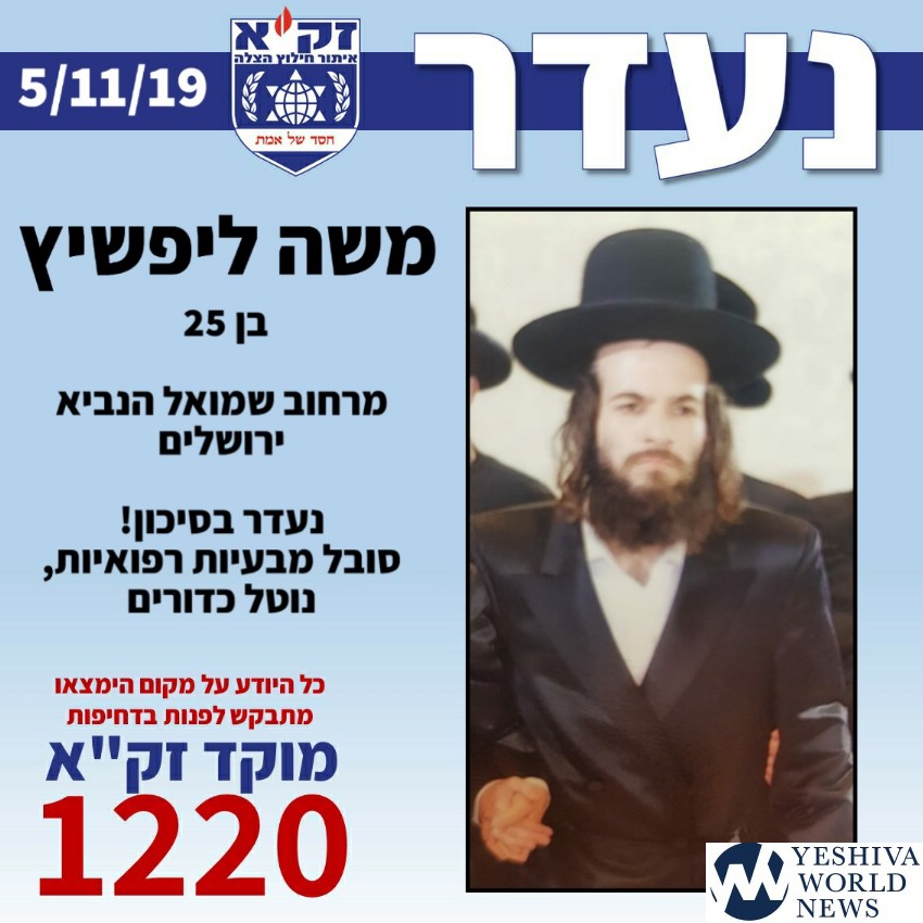 According to ZAKA, Lifshitz has medical issues and needs his medication. Anyone with information is asked to phone ZAKA at 1220.