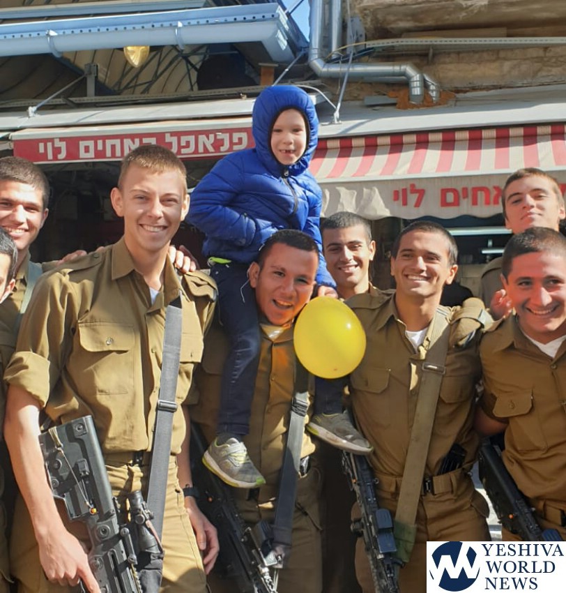 PHOTO: IDF Soldiers Greet Chabad Shaliach’s Son In Machane Yehuda
