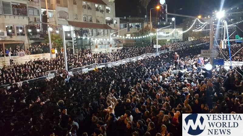 Thousands participated in the event surrounding the Satmar Rebbe of Williamsburg’s visit to Jerusalem on Tuesday evening. The Satmar Rebbe stood alongside rabbonim from the Eidah Charedis to celebrate the 100th anniversary of the organization’s founding.