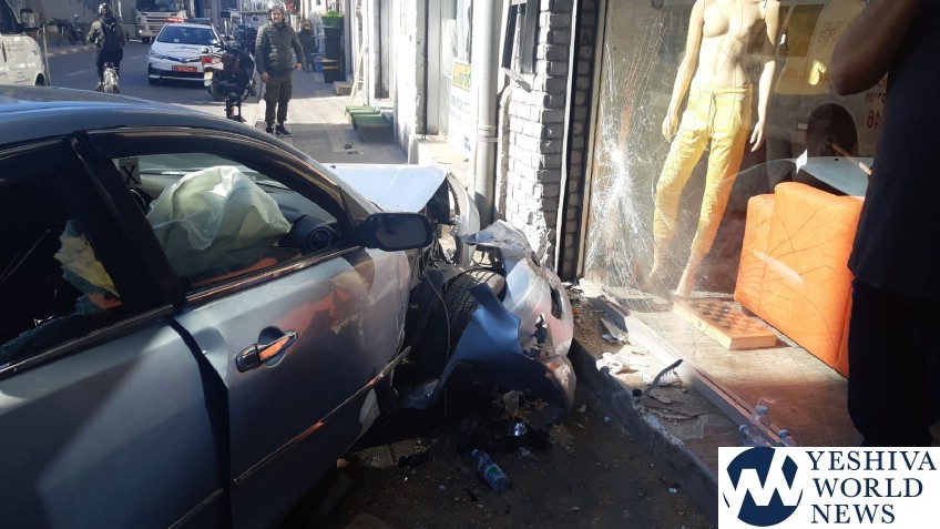 A vehicle which failed to yield the right of way on Eilat Street in Tel Aviv on Wednesday morning, smashed into the wall of a building as seen in the attached photos.