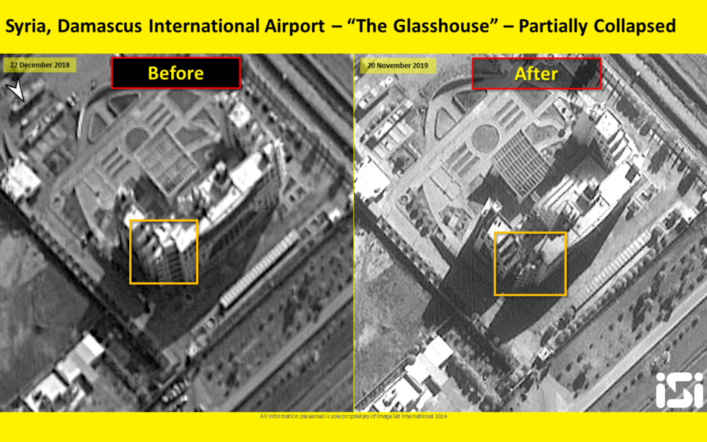 The ImageSat International – ISI program captured a series of photos from the attack showing the top two levels of the building destroyed. According to the report, the Intelligence Division of The Iranian Quds worked out of these offices.