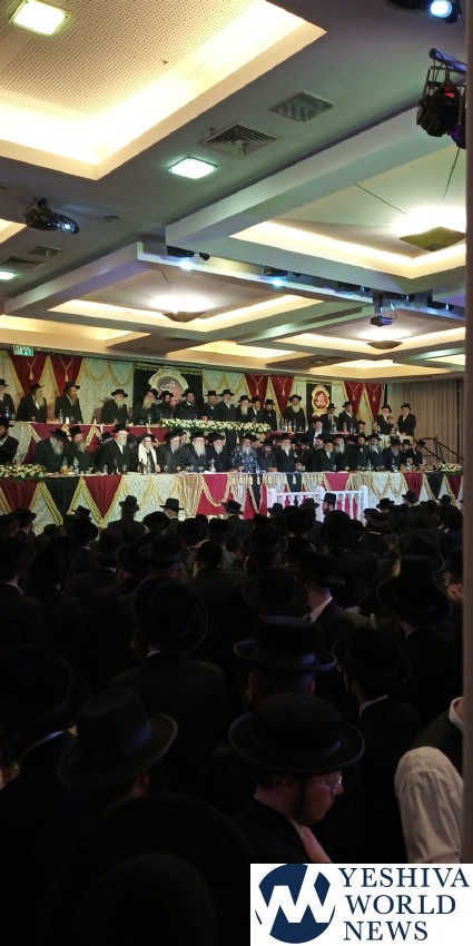 In the special event, we see the Rebbe along with the GAVAD of the Eida Chareidis HaGaon HaRav Yitzchok Tuvia Weiss Shlita, other Admorim, Roshei Yeshiva and Rabbonim.