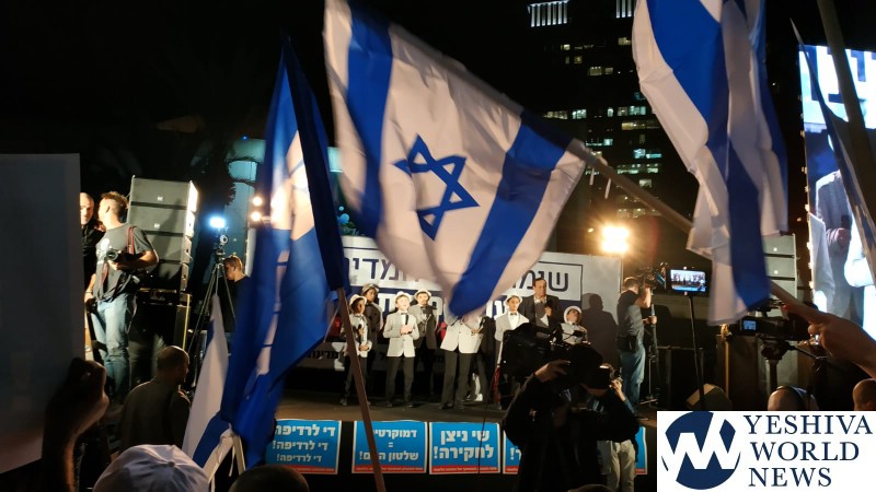 As the protest got underway in central Tel Aviv, a crowd of roughly 5,000 people rallied for Netanyahu, hoisting Israeli flags and posters that accused prosecutors of “blackmail” and “threats.” In a possible sign of trouble for Netanyahu, most of Likud’s senior officials skipped the event.