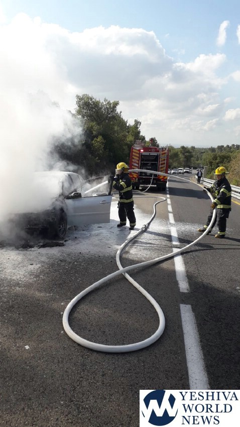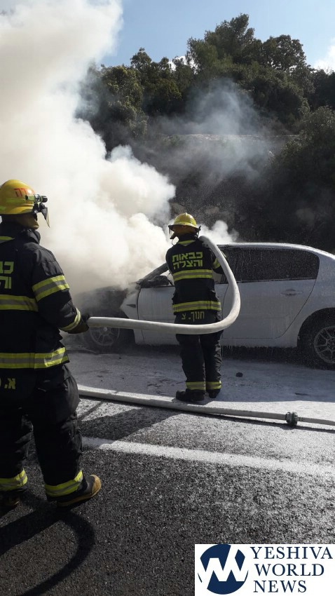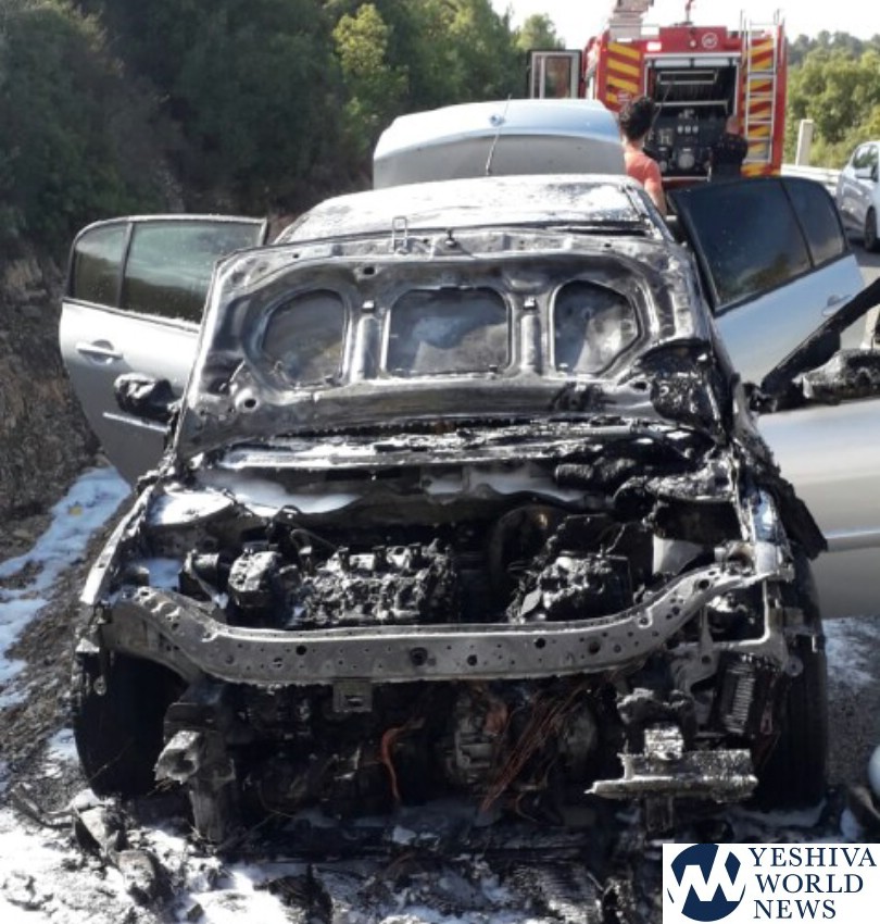 B’chasdei Hashem, there was no loss of life or injury when the engine of a vehicle burst into flames on Israel’s Route 3866 near HaNetifim Caves in the Beit Shemesh district on Sunday, December 1, 2019.