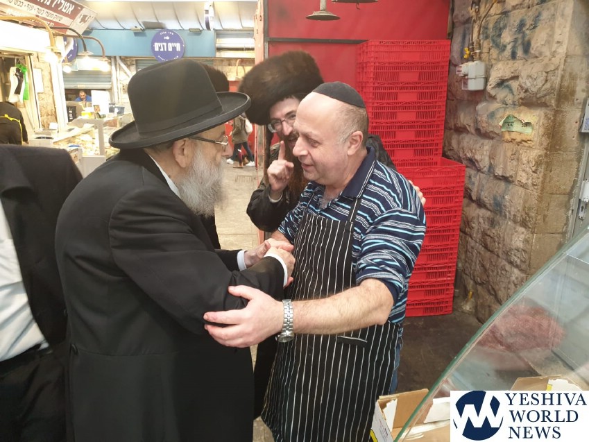 Jerusalem Chief Rabbi HaGaon HaRav Aryeh Stern Shlita visited Machane Yehuda close to the beginning of Shabbos in the hope of encouraging store owners to shut earlier during the winter months when Shabbos begins so early.
