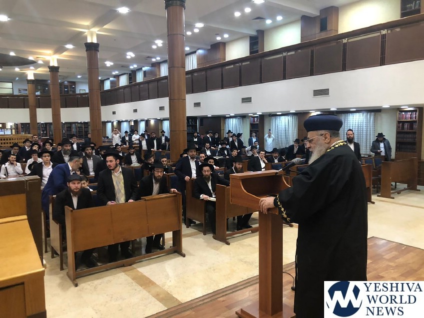 The Rishon L’Tzion met with Rav Lazar, accompanied by hundreds of Jewish residents of the city. Hundreds of talmidei yeshiva came from many areas to hear the rav give shiurim during the visit.