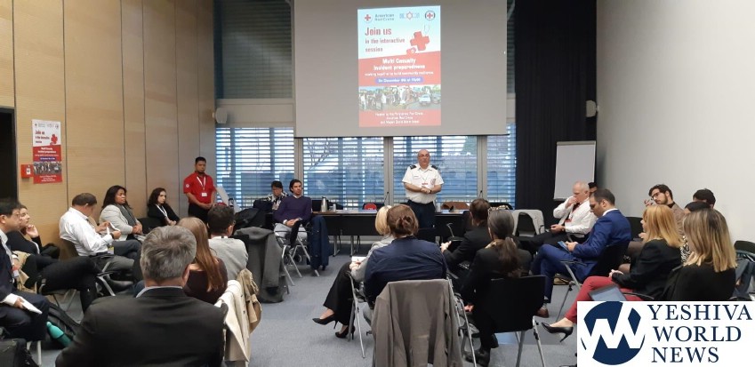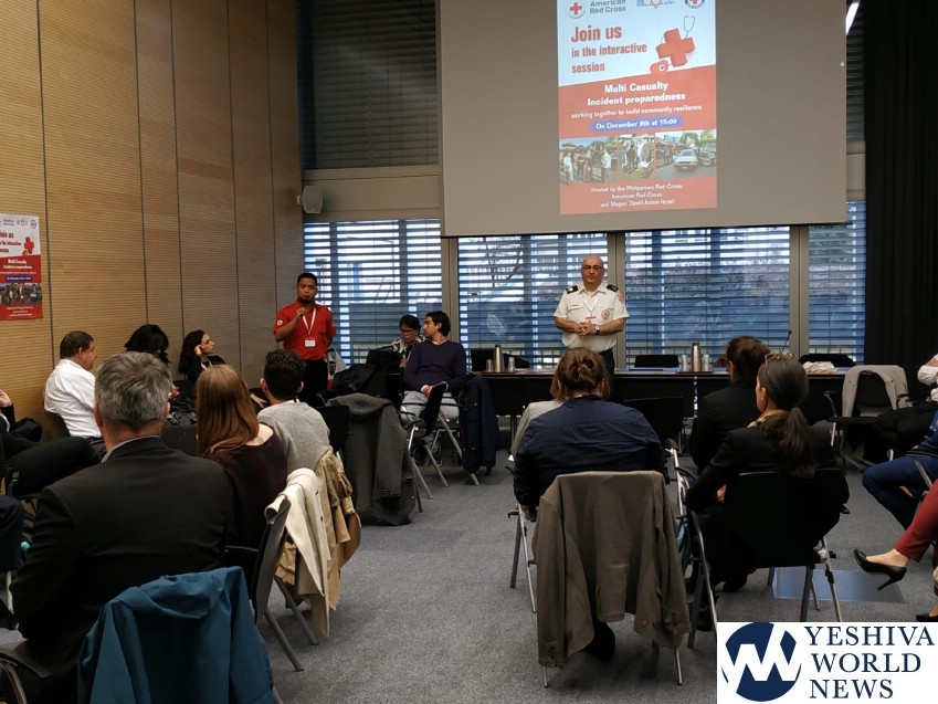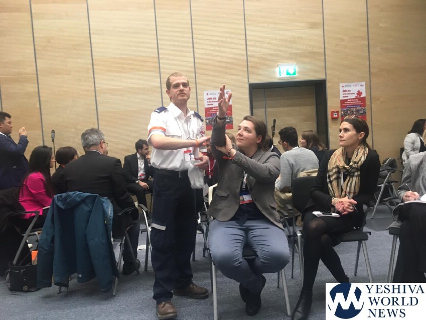Within the framework of The Red Cross Red Crescent 31st International Conference which took place in Geneva, a workshop was held last week. Through the workshop, conference members completed a short training that covered the management of the first minutes following the onset of a mass casualty situation including the administration of first aid to the casualties. The event was organized by The American Red Cross, The Philippine Red Cross, and Magen David Adom.