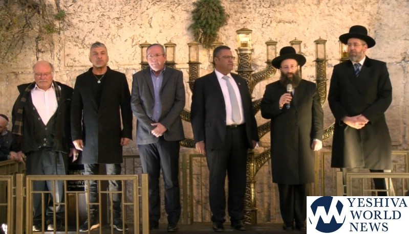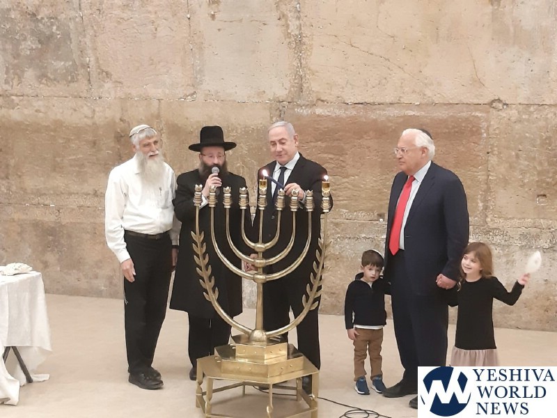 Just moments ago, the Menorah was lit at the Kosel on the first night of Chanukah. It was lit by Prime Minister Netanyahu. He was joined by U.S. Ambassador to Israel David Friedman and the Rov of the Kosel, HaRav Shmuel Rabinowitz.
