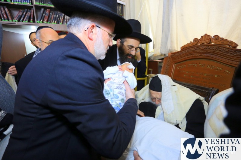 The baby’s older brother received a bracha from Harav Chaim and after the bris, while the almanah and other relatives went to the home of Harav Chaim’s daughter, Rebbetzin Leah Kolodetsky, who warmly welcomed the family and spoke words of chizuk to the mother.