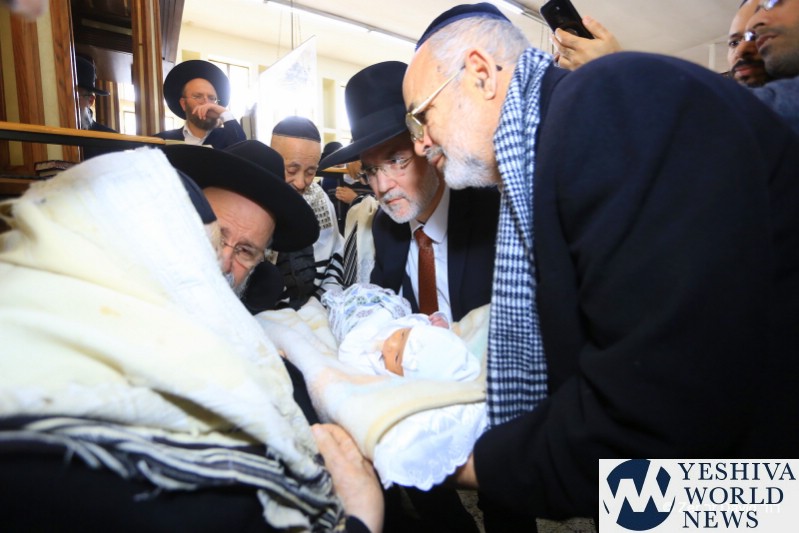 The askan Rav Eli Brauner, who is close to Hagaon HaRav Chaim Kanievsky, arranged for the Gadol Hador to serve as the sandak at the bris. Additionally, Harav Chaim also recited the brachos in place of the father.