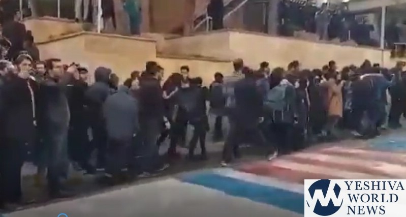 Watch in the second video below what happens when Iranians walk on the Israeli and American flags (most likely of the regime’s IRGC Basij members): They are booed & people begin chanting: “Shame on you!”