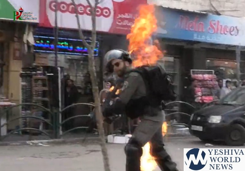 “Luckily, the firebomb landed on my vest and I immediately extinguished the flames with my hands,” the police officer told Ynet. “I think it took about two-three seconds, during which I felt intense heat on my body.”