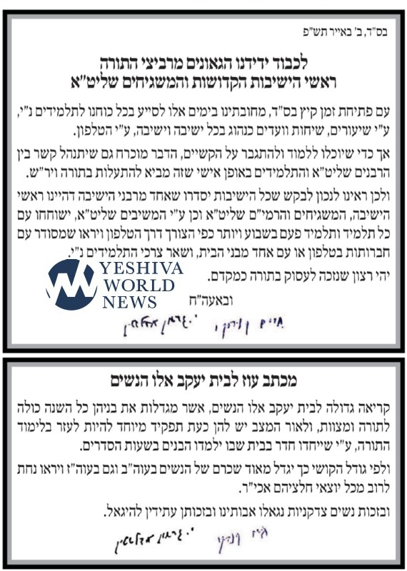 To the Teachers of Torah, Roshei Yeshiva of our Holy Yeshivos, and Mashgichim Shlita,
