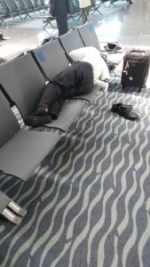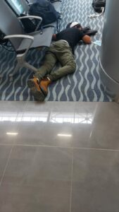 In a video of the scene, a man is heard talking to a doctor who arrived the scene, directing her to a chassid who fainted and was lying on the floor of the airport.