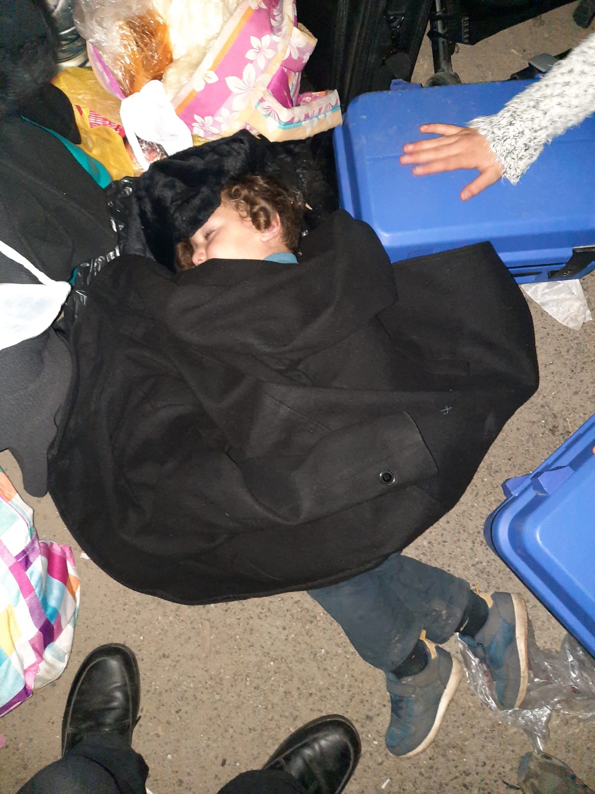 There are many children in the group – some as young as 4 years old – all without food and sleeping on the ground, shivering in the cold.