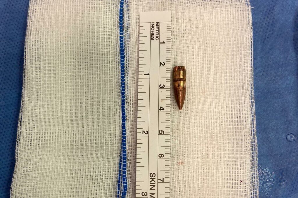 That looks like a rifle bullet, 5.56mm. from an M-16/M-4. These are standard issue to the IDF. Some are also in the hands of the Palestinians. The Pallies, and other Arabs, have a dangerous tradition of shooting guns in the air for celebration. This so called “happy fire” often has the unhappy consequence of injuring random individuals, often their own people, with the stray rounds.