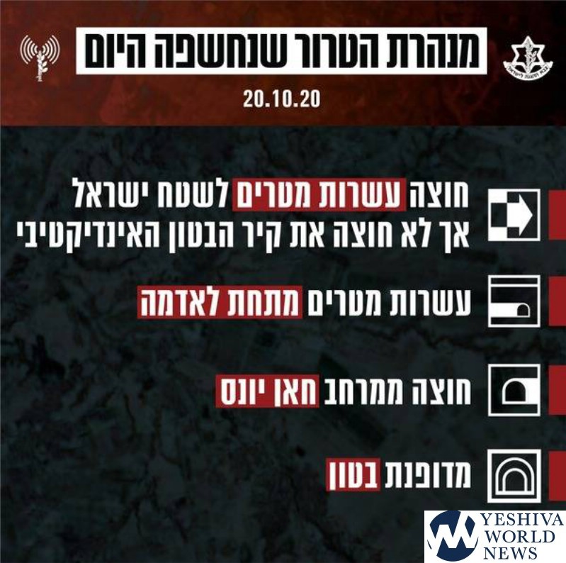 On Tuesday, the IDF discovered a terror tunnel that was in the process of being dug from inside Gaza that penetrated into Israeli territory. The tunnel was discovered by special sensors that the IDF put in place throughout the Gaza periphery as part of the new protective barrier surrounding the strip that is being built on the Israeli side of the border fence.