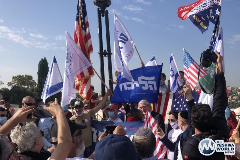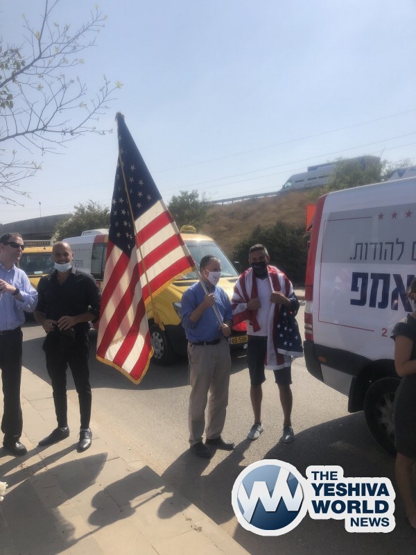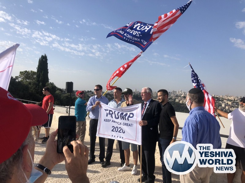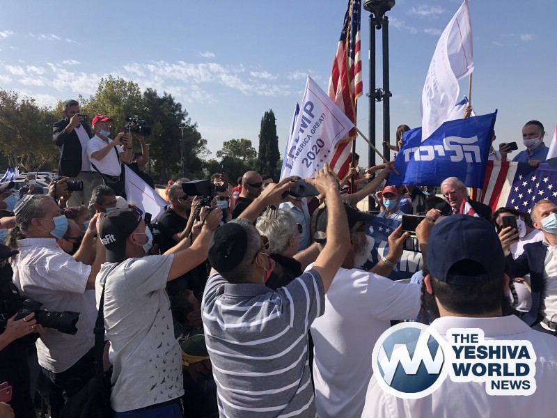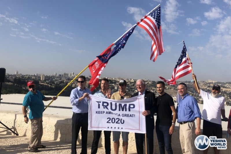 A convoy of cars decorated with American flags and Trump 2020 banners on Tuesday drove from Tel Aviv to Jerusalem, holding a rally outside the U.S. Embassy in support of the American president ahead of next week’s election.