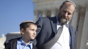 Menachem Zivotofsky with his father, Rabbi Ari Zivotofsky, outside the Supreme Court in 2011. (Photo: AP)