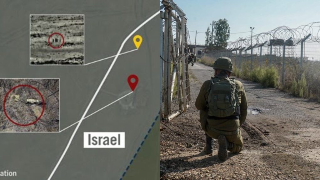 Location of the IEDs placed by Iranian operatives along the Israeli border (IDF spokesperson); IDF soldiers by the exposed IEDs on the Syrian border (IDF spokesperson)