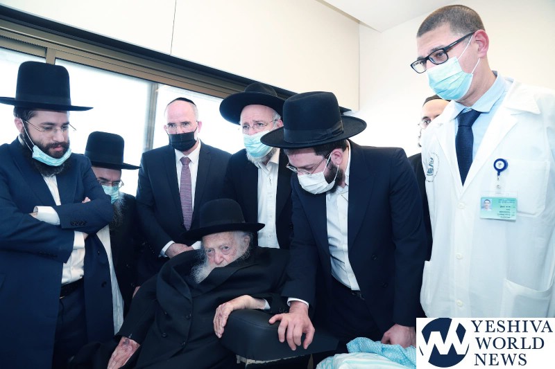 Earlier in the day, HaRav Kanievsky went to Sheba Hospital in Tel HaShomer in order to visit his son Rabbi Shlomo Kanievsky, who is hospitalized.